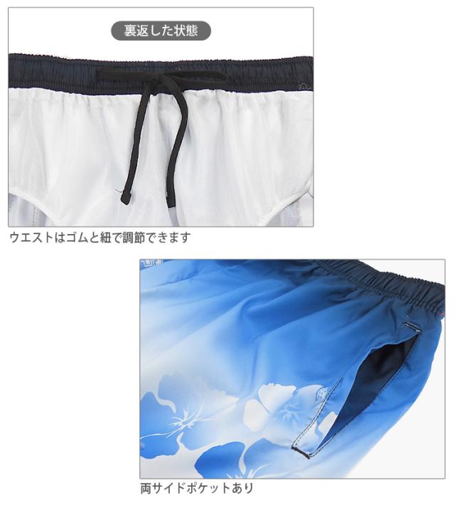 【メール便送料無料】【大きいサイズあり】サーフパンツ 水着 メンズ M L LL M-2551 ブルー オレンジ スイムウェア 海水パンツ 海パン 短パン トランクス ハーフパンツ ショートパンツ 男性 ヤシ柄 椰子 フラワー ハイビスカス ビーチ リゾート 紳士 青 sw3650