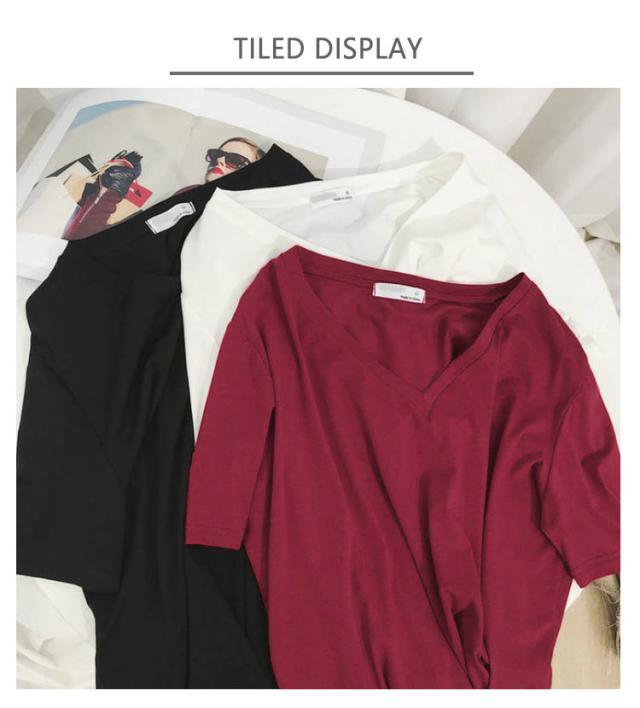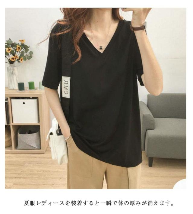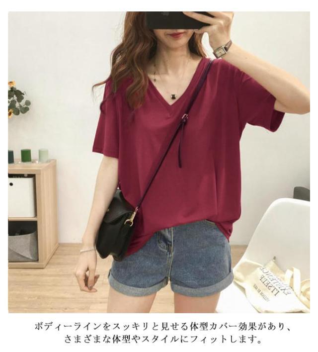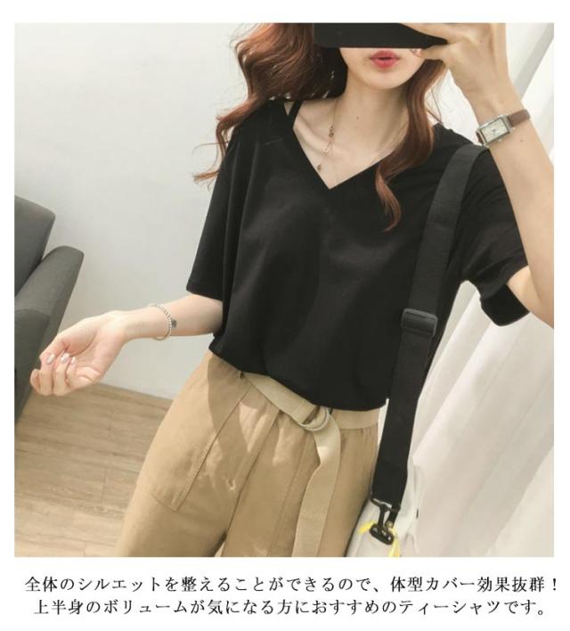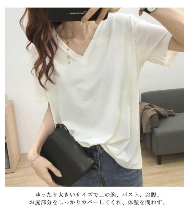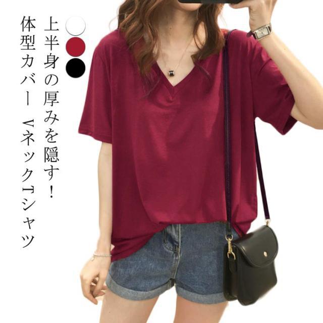 上半身の厚みを隠す!Vネックで痩せ見え tシャツ レディース 半袖 ティーシャツ トップス オーバーサイズ ゆったり 透けない 吸汗速乾 通気 夏服 カットソー 長め おしゃれ 5分袖 出かけ 仕事 通勤 無地 シンプル 着痩せ