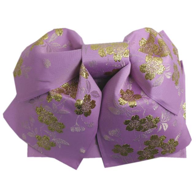 結び帯 付け帯 作り帯 薄紫色地金糸入り桜さくら 日本製 浴衣 ゆかた 簡単 巻いてポン 女性用 レディース むすび帯 つくり帯 桜柄 ラメ入り