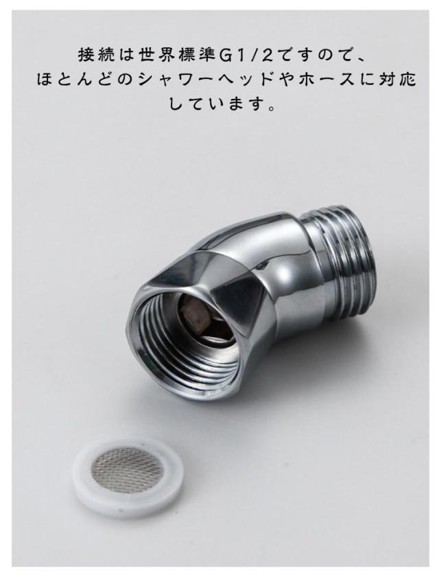 シャワーヘッド シャワーエルボ 135°回転式 水栓用 G1/2in シャワーシステム シャワーアダプター 角度調整 水栓部品 シャワーアーム バスルームアクセサリー 家庭用 送料無料