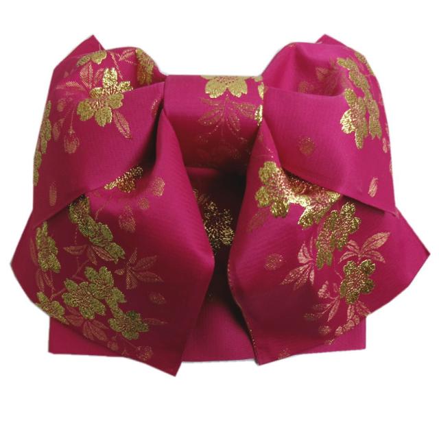 結び帯 付け帯 作り帯 濃ピンク地金糸入り桜さくら 日本製 浴衣 ゆかた 簡単 巻いてポン 女性用 レディース むすび帯 つくり帯 桜柄 ラメ入り