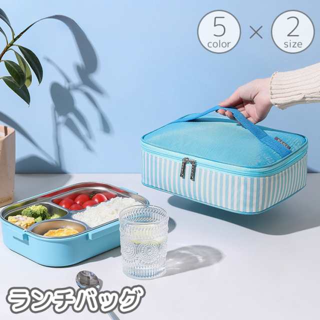 ランチバッグ お弁当入れ お弁当袋 ランチボックス ケース 男女兼用 手提げ ストライプ 平ら フラット 保温 保冷 かわいい