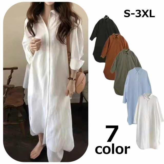 シャツワンピース ロング丈 レディース 婦人服 長袖 レギュラーカラー 襟付き 前開き マキシ丈 シンプル カジュアル 上品 無