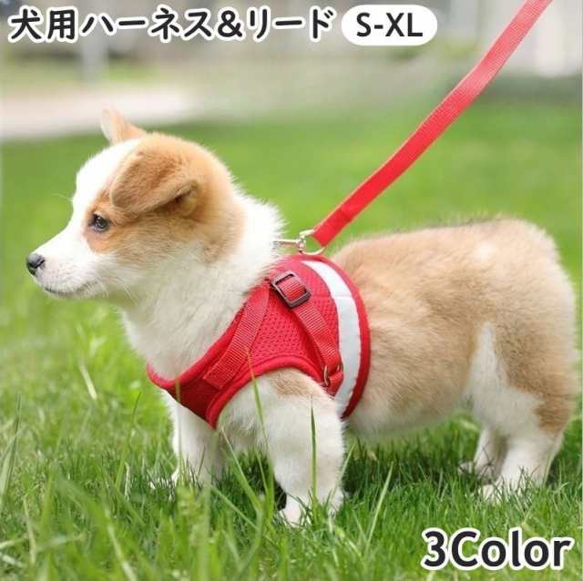 ハーネス リード 2点セット 小型犬 中型犬 イヌ 猫 ネコ ペットグッズ ペット用品 お散歩グッズ 背中開き 背中あき 反射板