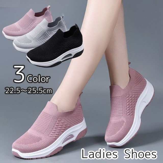 スリッポン スニーカー 厚底 エアクッション シューズ 靴 レディース 女性 婦人 紐なし ニット風 メッシュ スポーティー カ