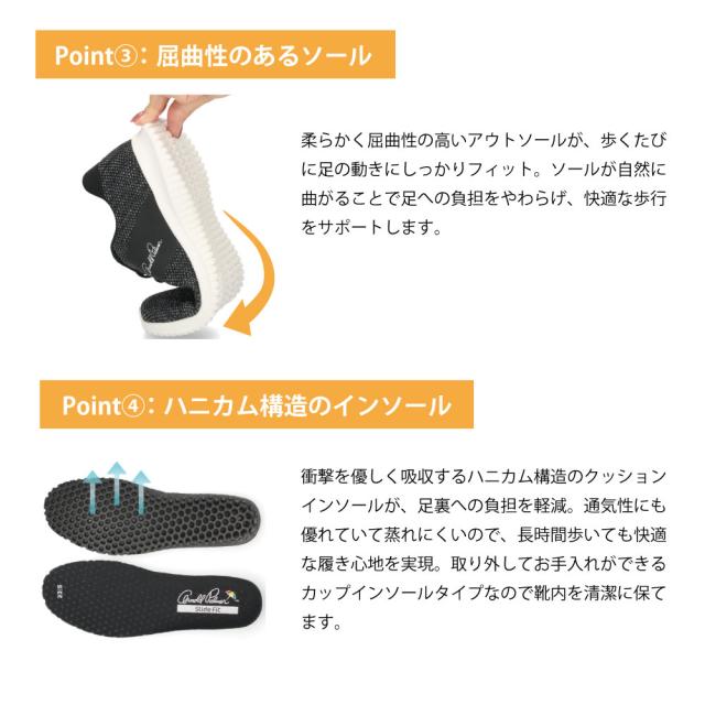 | 手を使わずにすぽんと履ける! ワンステップで簡単に脱ぎ履きできて毎日のお出かけがもっと快適に。 カジュアルデザインのスリッポンで足元をおしゃれにしつつ玄関でのストレスがゼロになる一足 かかとにはモールドパッドを採用し、足入れをしっかりサポート。つぶれにくい構造で、立ったままでもスムーズに履くことができます。 柔らかく屈曲性に優れたアウトソールが足の動きにぴったりとフィット。歩くたびに自然に曲がるので足への負担をやわらげ、快適な歩行をサポートしてくれます。 軽量設計で靴の重さを感じさせない履き心地で足の負担を軽減。長時間歩いても疲れにくく、日常使いや長く歩く時にもピッタリです。 中敷きには通気性と衝撃吸収性に優れたハニカム構造のカップインソールを採用。足裏への衝撃を優しく分散し、一日中履いても蒸れにくく快適。取り外してお手入れもできるので、いつでも靴内を清潔に保てます。 シンプルでカジュアルなデザインと、どんな服にも合わせやすい落ち着いたカラー展開で、さりげなく高見えしてくれます。 普段のお出かけはもちろん、旅行やイベントなどのアウトドア、オフィスや通勤・通学までどんなシーンでも頼れる一足です。 |