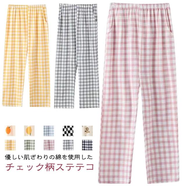 ステテコ レディース 春夏 ポケット付き リラックスウェア ルームウェア チェック柄 ライオン 寝間着 ルームパンツ 部屋着 春 夏 ルームパンツ 薄い ズボン 無地 総柄 外出 ナイトウェア 柔らかい 薄手 短パン 肌着 ゆったり 大きいサイズ 母の日