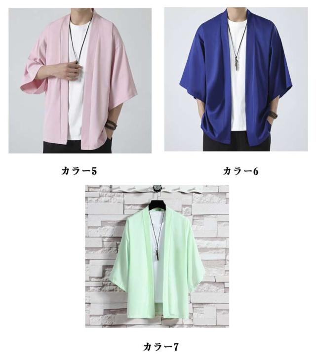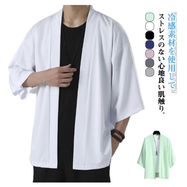 全7色 冷感 甚平 羽織 メンズ シャツ 作務衣 法被 おしゃれ サマー シャツ カーディガン 夏 羽織り 夏祭り 浴衣 ゆったり 開襟シャツ 夏用 紫外線防止 花火大会 お祭り 羽織物 和装 夏フェス プレゼント M L XL 2XL 3XL 4XL 5XL