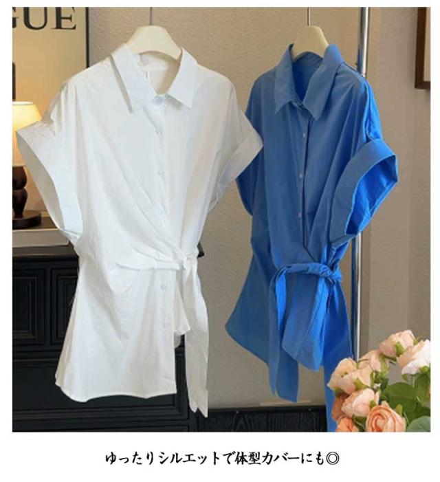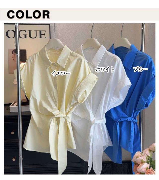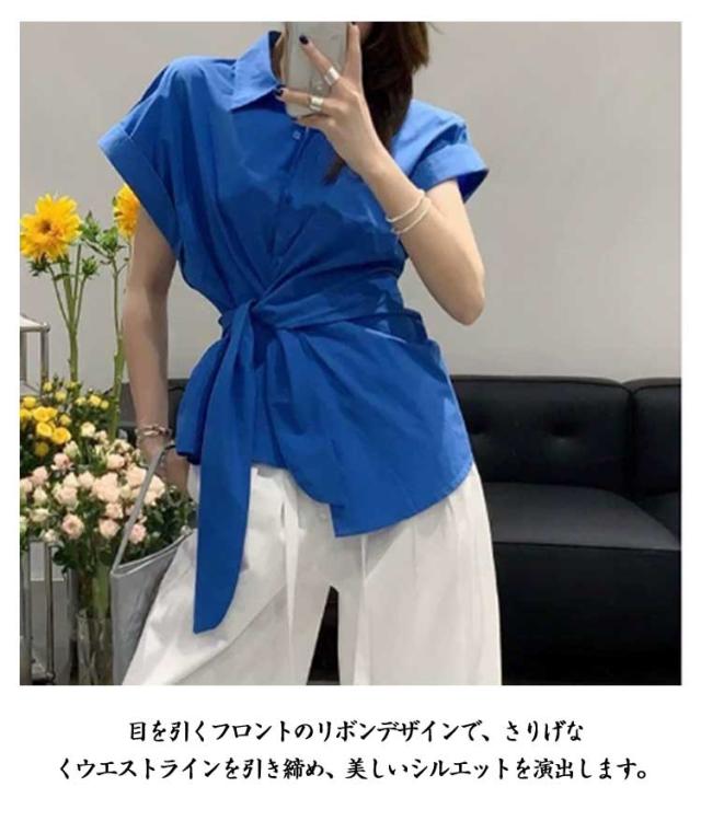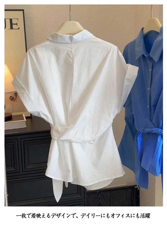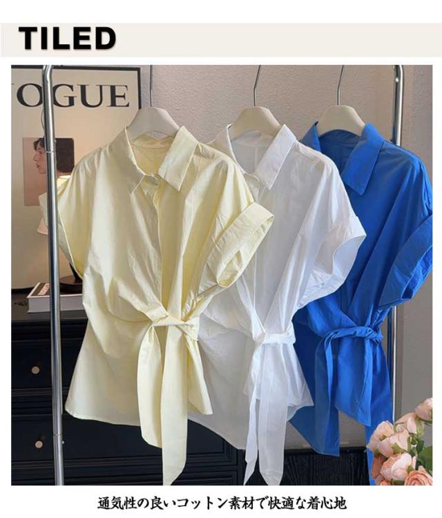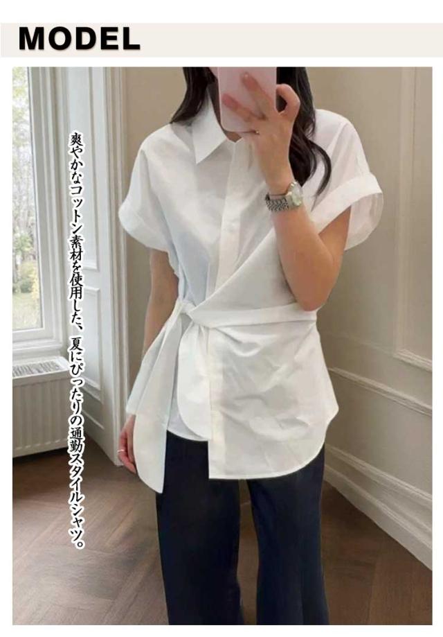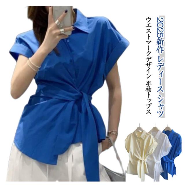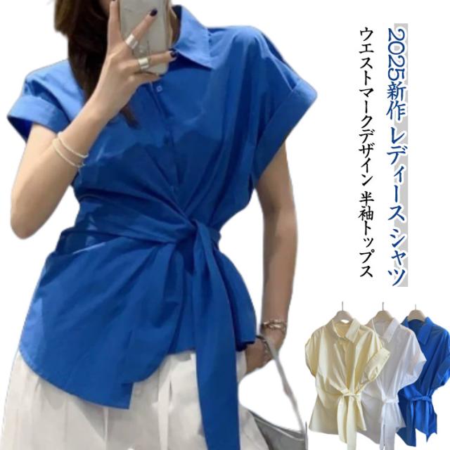 2025春夏新作 半袖 シャツ レディース コットン ウエストマーク シャツ ブラウス トップス 折り襟 スリム シンプル おしゃれ 通学 通勤 オフィス カジュアル フリーサイズ 春 夏 40代 30代 20代