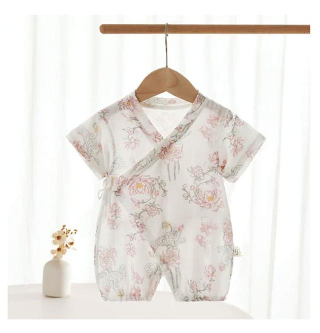 | サラサラ、てろてろ 竹レーヨン甚平オール 二重織竹レーヨンガーゼ素材、滑らかでデリケートなベビーのお肌に最適♪ お腹が二重になっていて寝冷えしにくい。胸元は紐、足元はボタンタイプで、赤ちゃんが寝転んだままでも着脱しやすく、オムツの交換が楽にできます。 とても可愛い柄なので、赤ちゃんにはピッタリな甚平です。 | |
