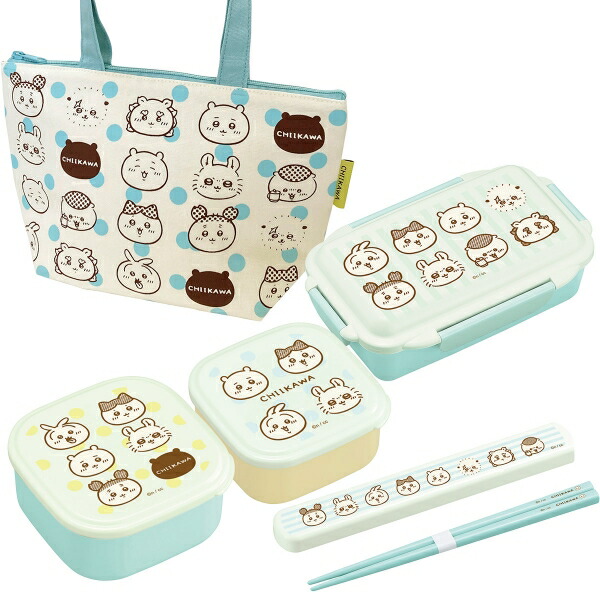 ちいかわ ストライプ お買得4点セット 4点ロックお弁当箱 500ml 箸&箸箱 19.5cm シール容器2P ランチバッグ