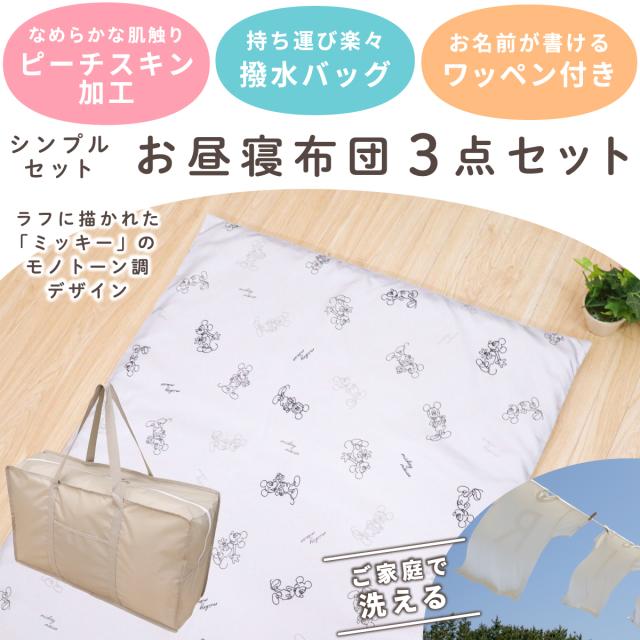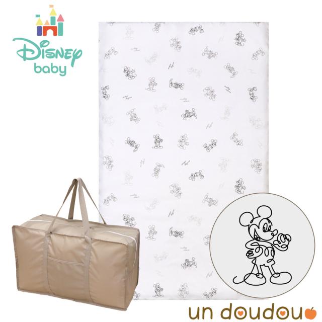 ディズニー お昼寝布団 保育園 3点セット 70×120cm ミッキーマウス 吸水 ファスナー 固わたマット 防水撥水バッグ ネームタグ 新品 キッズ グレー un doudou OHF-3