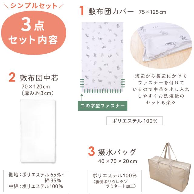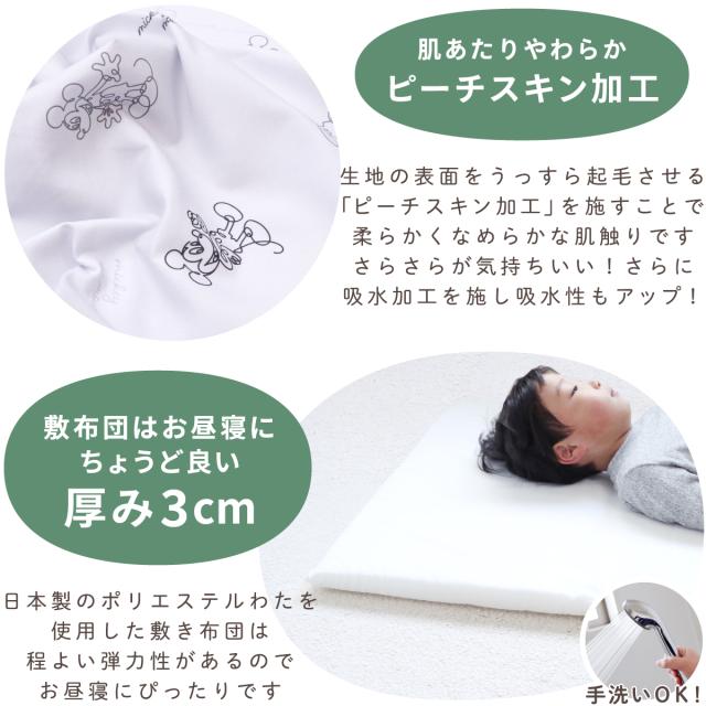 敷き布団は日本製のポリエステルわたを使用し、程よい弾力性があるのでお昼寝にぴったりです。