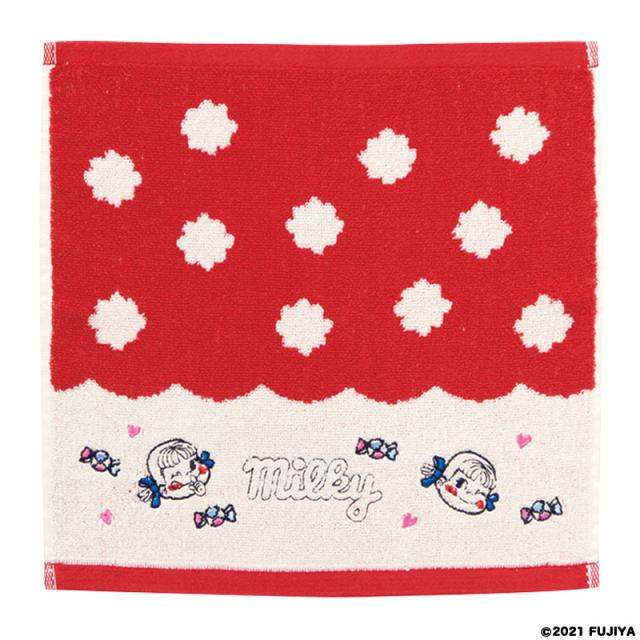 ミルキーペコちゃんデザインのタオルです。