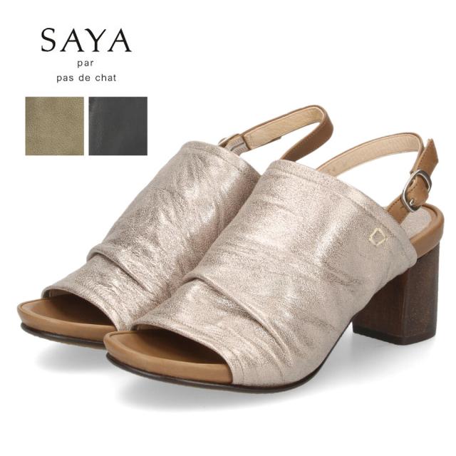 サンダル レディース 本革 ストラップサンダル 甲深 太ヒール サヤ 51254 ブラック オリーブ シルバー SAYA 靴 ラボキゴシ 日本製