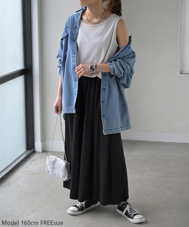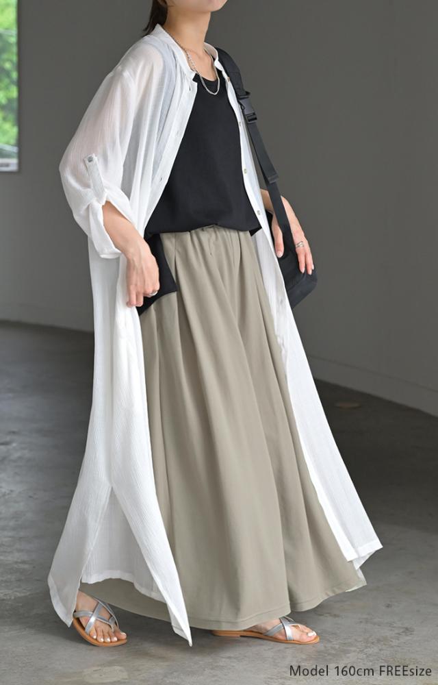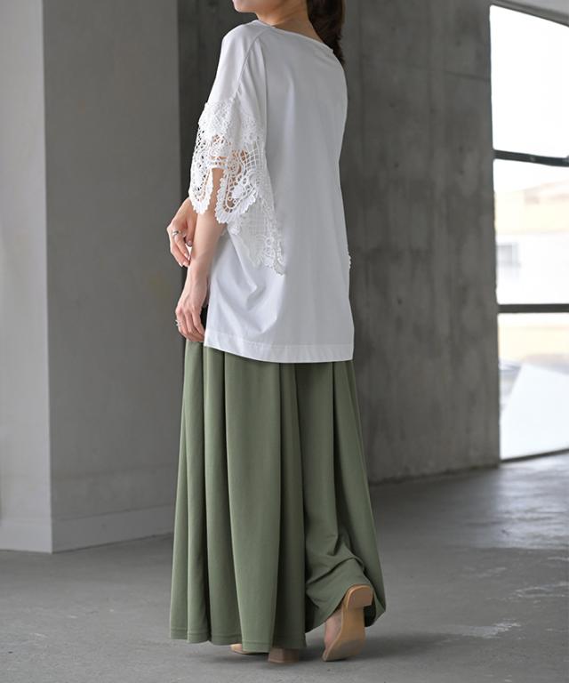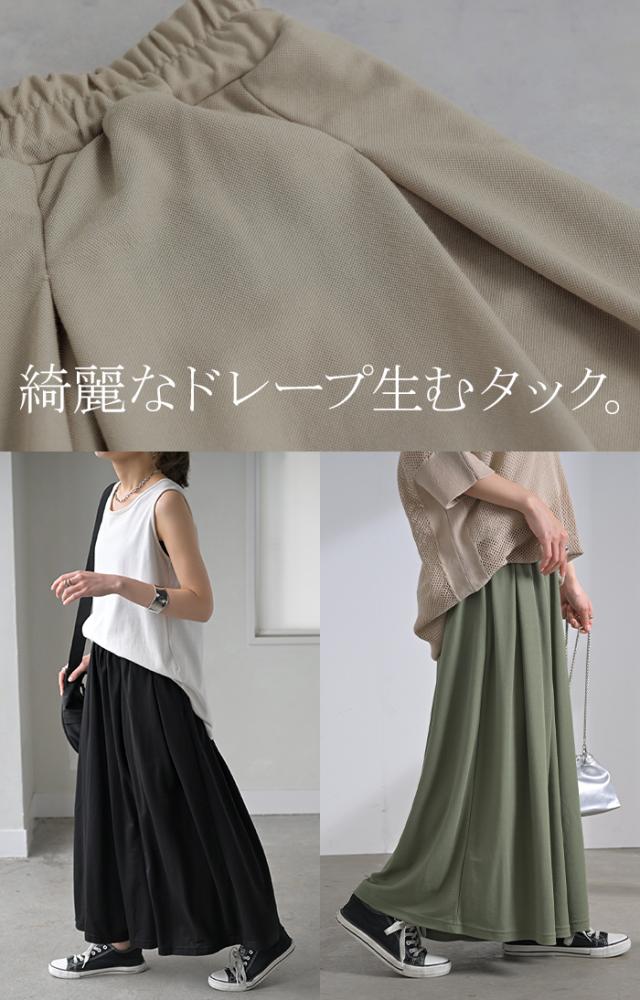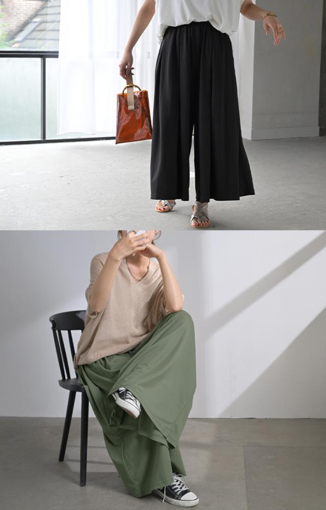 スカート見えするほどの分量をたっぷりとったワイドシルエット◎。