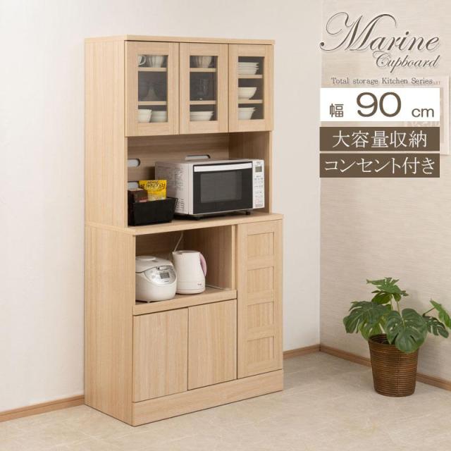 カップボード 幅90cm 食器棚 おしゃれ キッチン収納 北欧 スライド レンジ台 レンジボード コンセント付 大容量 キッチンラック レンジラック 台所