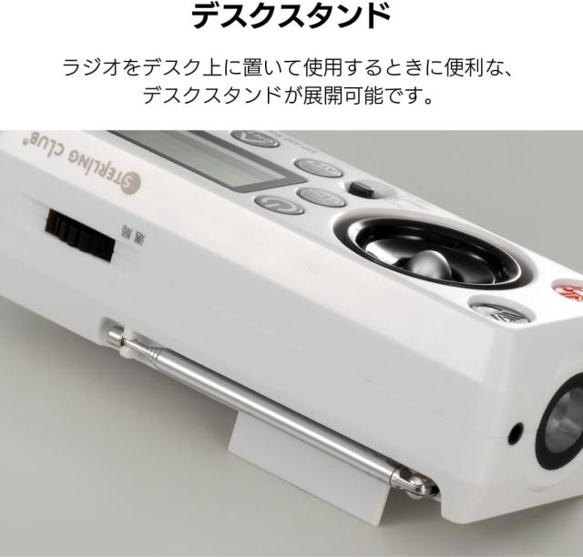 ラジオをデスク上に置いて使用するときに便利な、デスクスタンドが展開可能です。