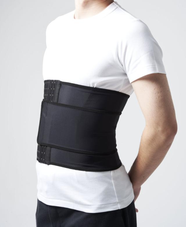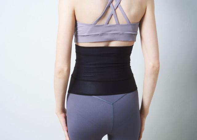 3 更に負荷をかけたい時は追いベルトを本品の上からくびれの位置に巻き、面ファスナーで留める。