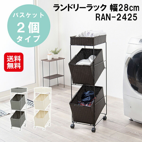 【ランドリーラック 幅28cm バスケット2個 RAN-2425】【送料無料】