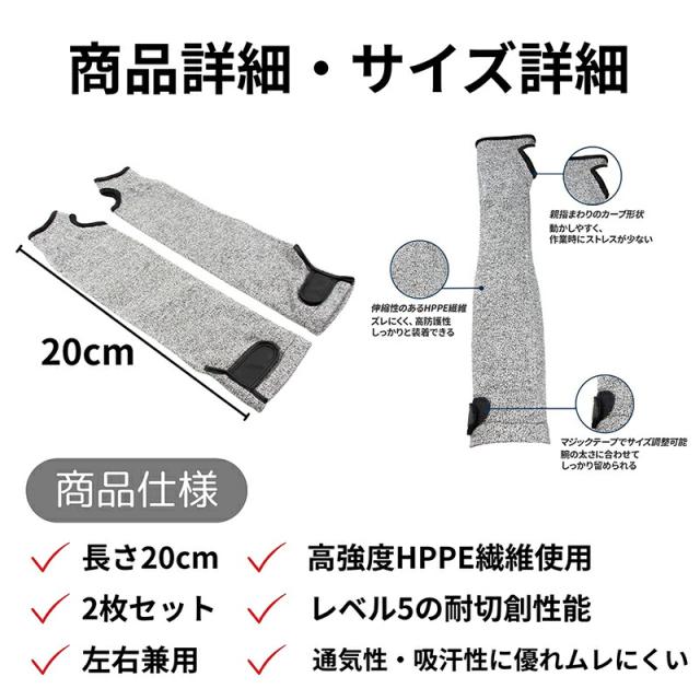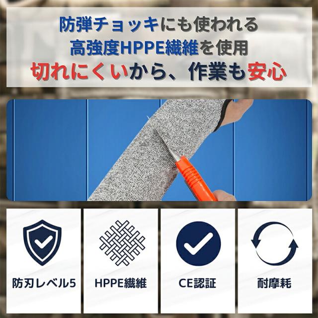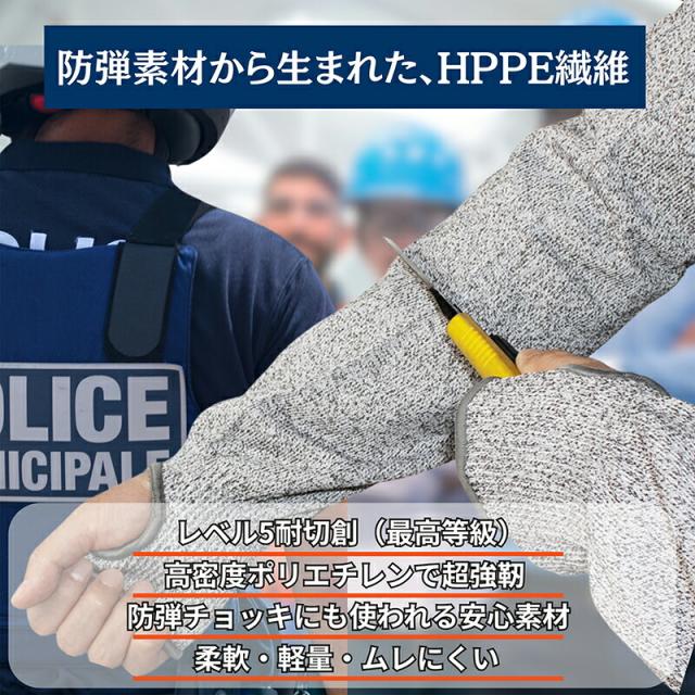 商品詳細: 様々な危険から腕を守る切れないアームガード!特殊なHPPE線維でできていて耐切創はレベル5を実現! 手の甲までガードし、危険な刃物を使う時に腕をしっかり保護します!防刃手袋と一緒に使用するとさらに安全性が増します。