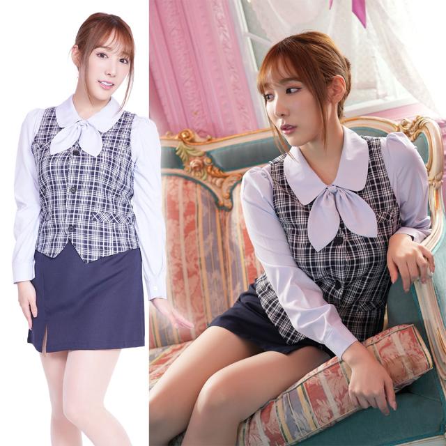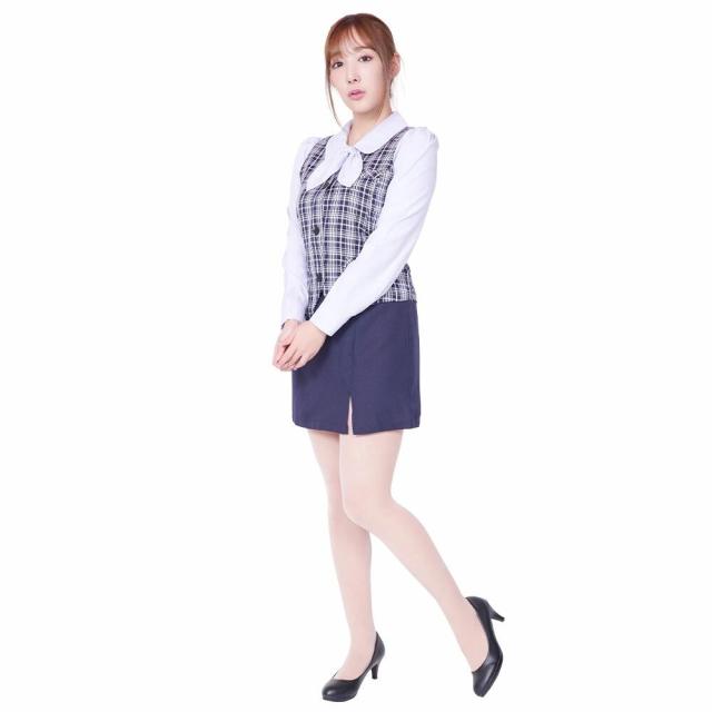 【丸の内チェックOL(Mサイズ)女性用】【送料無料】 セクシー コスチューム OL コスプレ 衣装 制服 秘書 事務服 ブラウス 長袖 タイトスカート リボンタイ ハロウィン 仮装 大人 女性 レディース tam33777