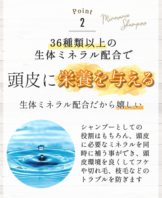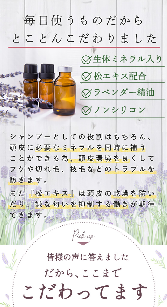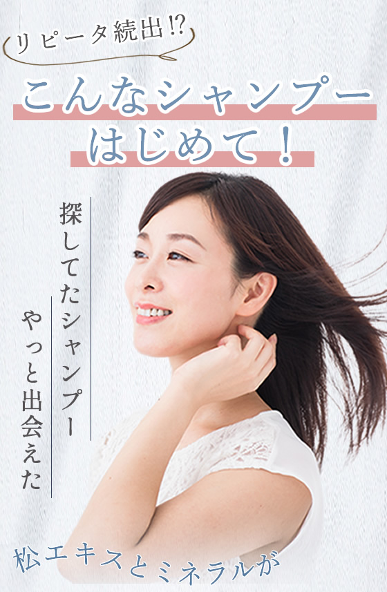 今までに全くなかった、「生体ミネラル」+「松エキス」配合のシャンプーです。