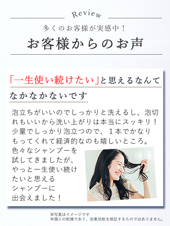 洗い心地(使用感)、その後のしっとり感、つやのある髪に!一日中爽快感に包まれます。