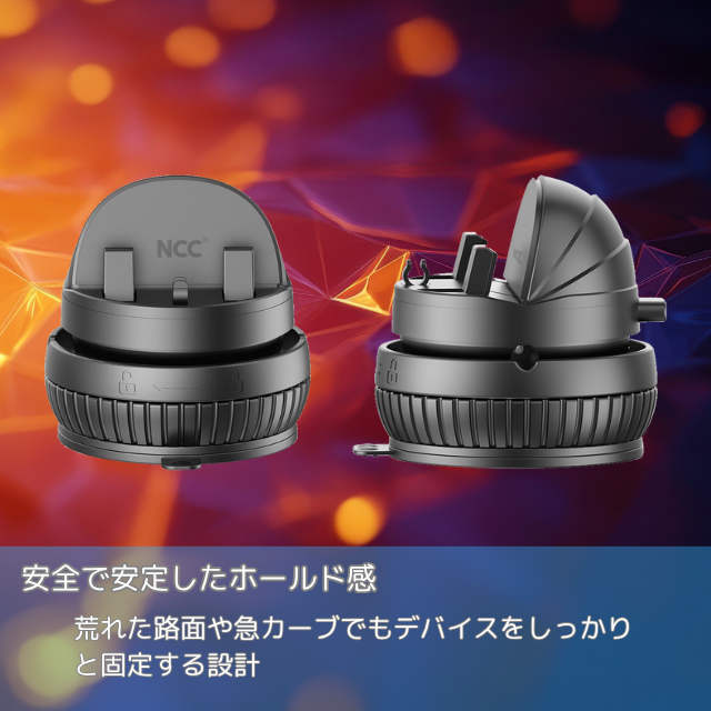 2.安全で安定したホールド感 - 荒れた路面や急カーブでもデバイスをしっかりと固定する設計。