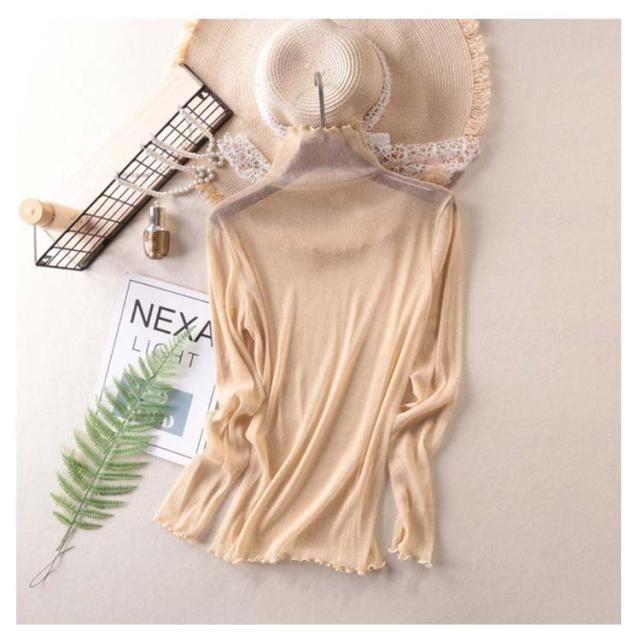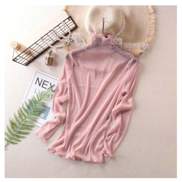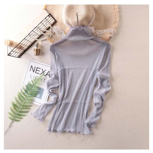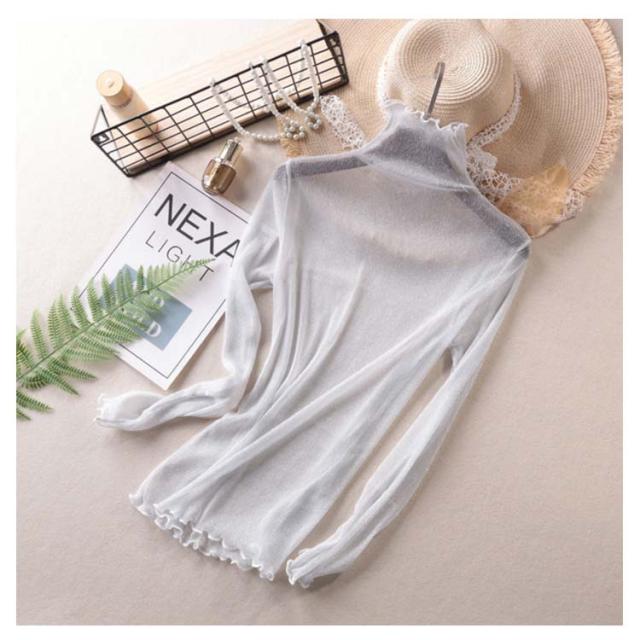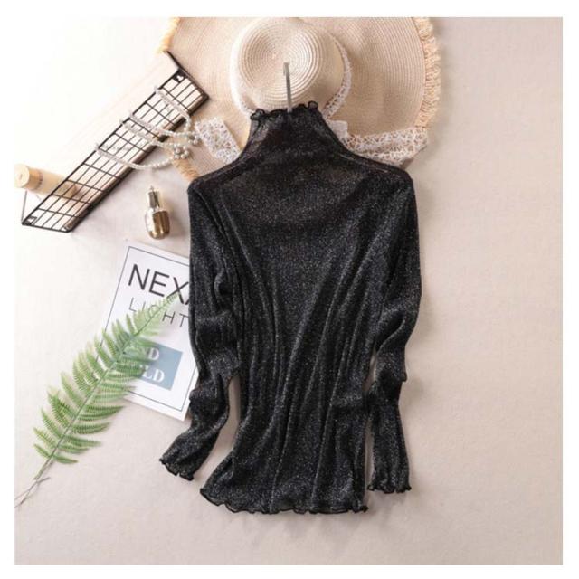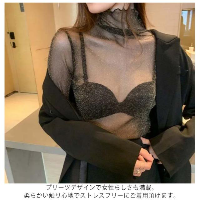【送料無料】シアートップス シースルー レディース 長袖 ハイネック メロウ インナー 透け感 レイヤード コーデ 重ね着 薄手 きれいめ かわいい セクシー 韓国 ベージュ ブラック ホワイト シルバー 人気 トレンド 無地 ストレッチ S-4L