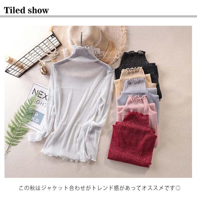 | レイヤードスタイルをよりお洒落に見せるシアートップス。 プリーツデザインで女性らしさも満載。柔らかい触り心地でストレスフリーにご着用頂けます。 涼し気な透け感がありながら長袖の仕様なので、肌寒い時期のレイヤードはもちろん夏服や冬服からのシフトチェンジにも活躍する1枚。 ハイネックデザインできちんと感もあって◎これからのインナーにオススメのアイテムです。 この秋はジャケット合わせがトレンド感があってオススメです◎ | |