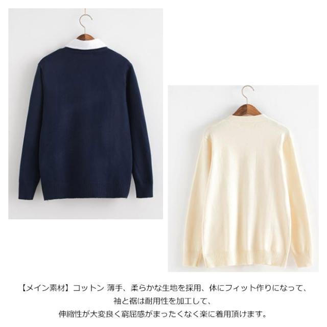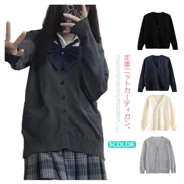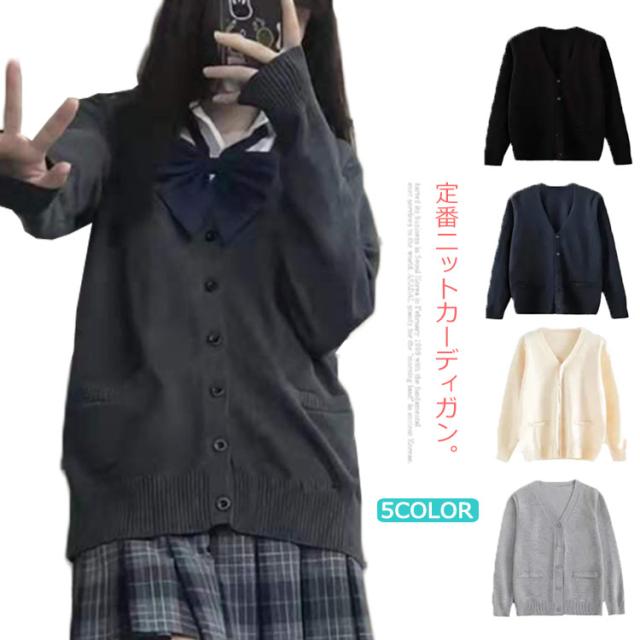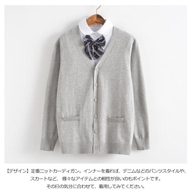 スクールカーディガン 綿100% 男子 女子 制服 ゆったり Vネック ニットカーディガン 秋冬 春 無地 スクールセーター 前開き 学生服 高校生 中学生 ベージュ グレー 紺
