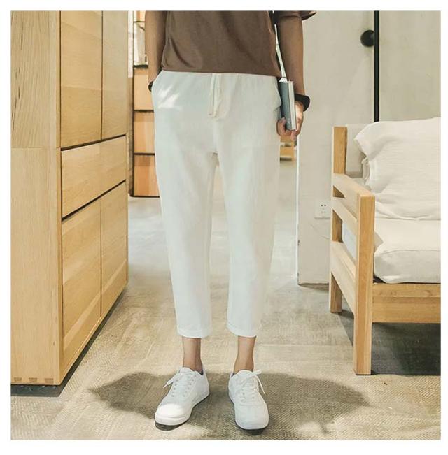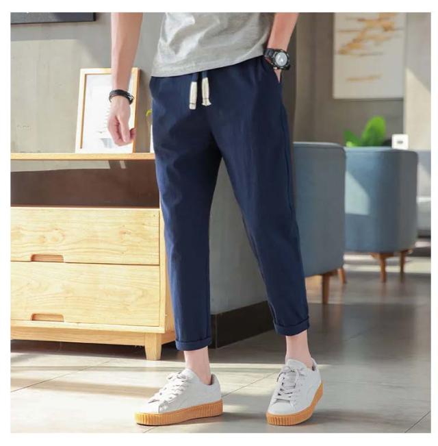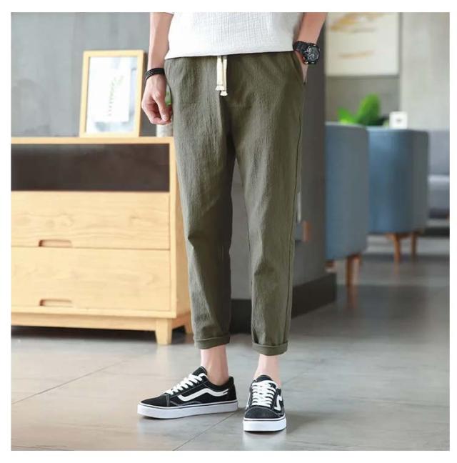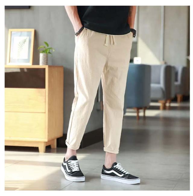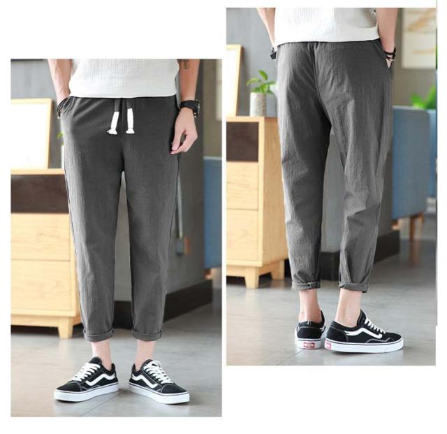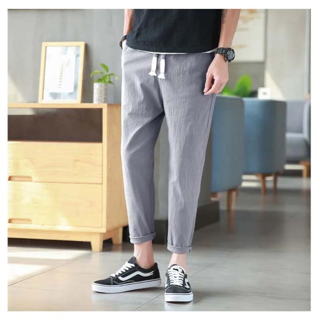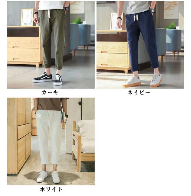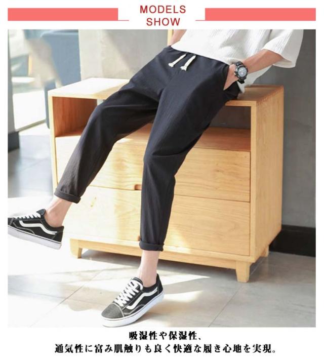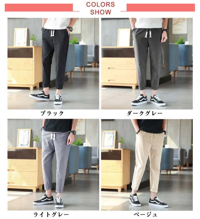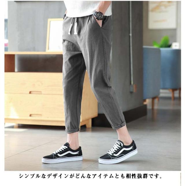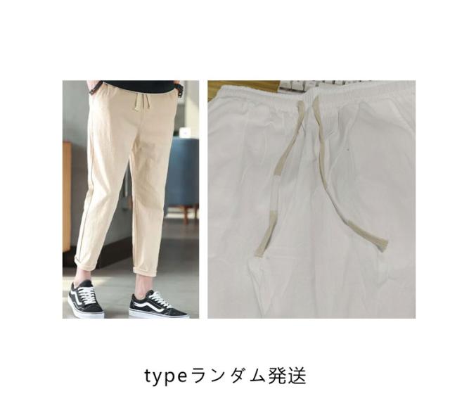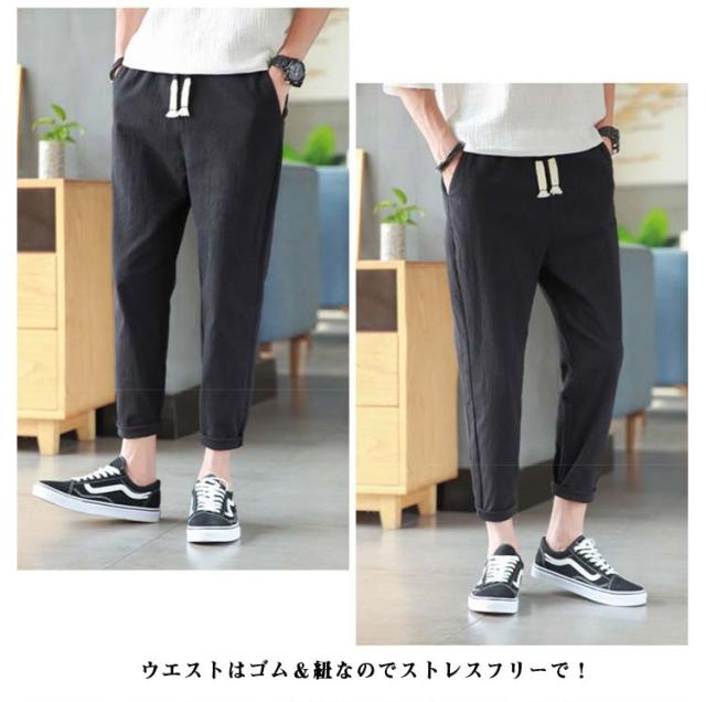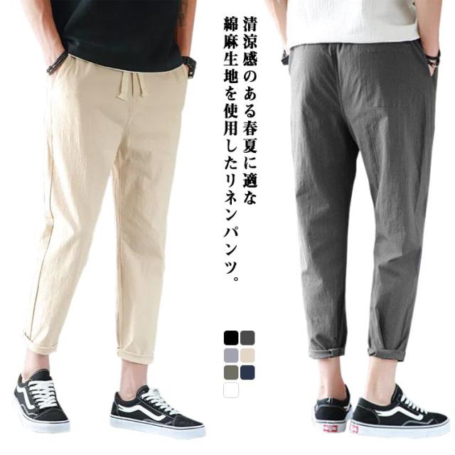 リネンパンツ メンズ 夏 テーパードパンツ 綿麻パンツ リネン 綿麻混 ロングパンツ ウエストゴム スリムパンツ 9分丈 パンツ 薄手 涼しい 長ズボン イージーパンツ サルエルパンツ ボトムス カジュアル リラックスパンツ 無地 送料無料