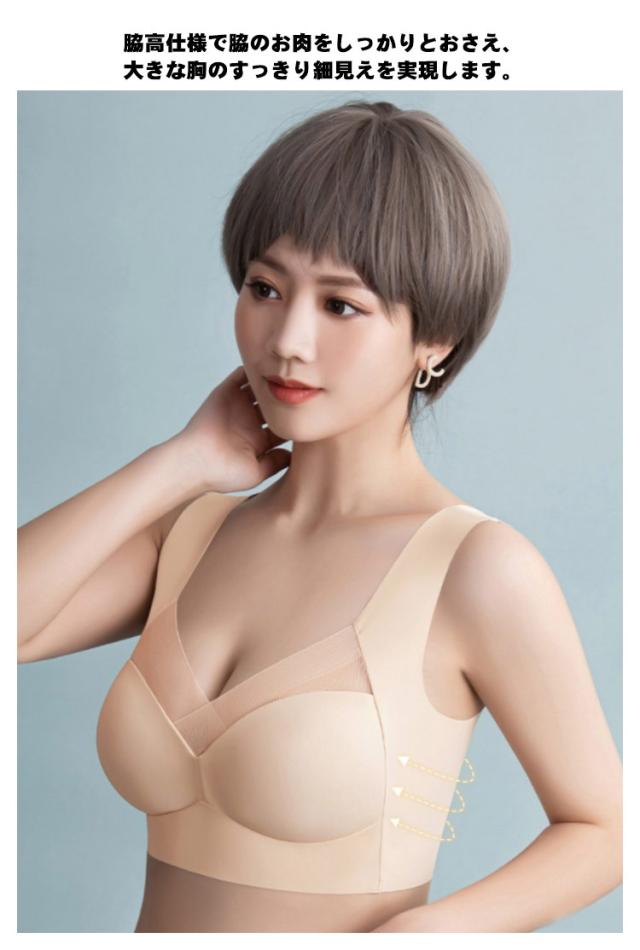 ブラジャー 胸を小さく見せるブラ 小さく見せるブラジャー レディース ノンワイヤー ブラ ブラジャー フルカップ 大きな胸を小さく見せるブラ 大きいサイズ 脇高 補正下着 脇肉 背中 スッキリ 着?せブラ 下着 無地 シンプル