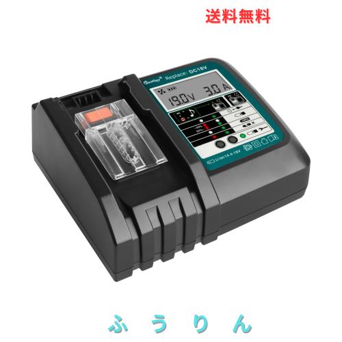 WaitleyマキタDC18RC充電器 互換 マキタ18V /14.4Vバッテリー充電器 冷却ファン付き 液晶パネル付き 充電開始/完了メロディ付 マキタ18V