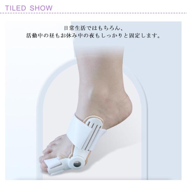 | 外反母趾変形を緩和するために3点圧力システム採用 日常生活ではもちろん、活動中の昼もお休み中の夜もしっかりと固定します。 痛みや疲れを軽減します 足指をやさしく保護する外反母趾専用サポーターで歩行時に痛みが伴う方 親指が曲がってきた方、親指の根元が靴にぶつかる方などにオススメです。 耐久性に優れ、長期間使用しても変形しません。 汚れたら水洗いできるので、繰り返し清潔にお使いいただけます。 | |