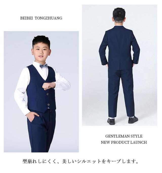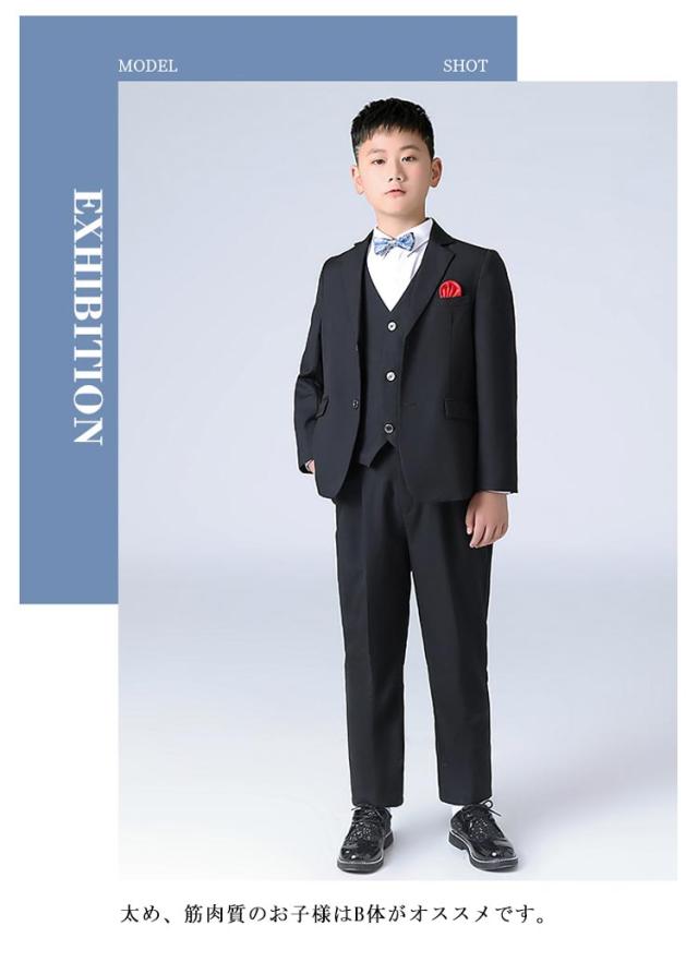 | 6点セット内容:ジャケット、ズボン、ベスト、シャツ、ネクタイ、ポケットチーフ6点セット。 太め、筋肉質のお子様はB体がオススメです。 通気性に優れた生地でさらっと快適。 型崩れしにくく、美しいシルエットをキープします。 大変肌触りの良い生地で、仕立ても丁寧でしっかりしていました。 卒園式、入学式、発表会など大切な式だけでなく、お食事会やお出かけにも気負いなく着ることができます! 入園式、入学式、結婚式、披露宴、発表会、演奏会、パーティーや誕生日、記念撮影などフォーマルなシーンで幅広くお使い頂けます。 | |