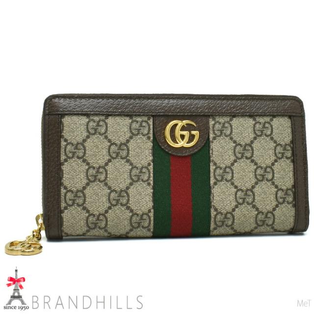 グッチ 長財布 メンズ レディース GGスプリーム オフディア ベージュ エボニー ラウンドファスナー 523154 GUCCI 未使用品 【中古】