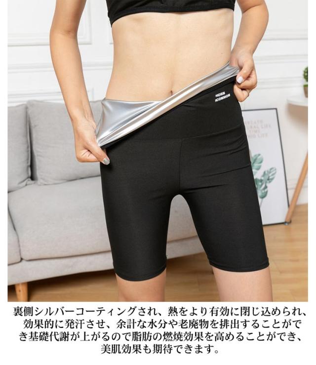 | オシャレなサウナスーツ。ダイエットや代謝UPに最適♪運動効率UPで発汗促進! 熱を逃さず、軽い運動でもシェイプUP効果抜群のサウナパンツ。 裏側シルバーコーティングされ、熱をより有効に閉じ込められ、効果的に発汗させ、余計な水分や老廃物を排出することができ基礎代謝が上がるので脂肪の燃焼効果を高めることができ、美肌効果も期待できます。 伸縮性抜群の素材を採用し、身体の動きを妨げず、ズレにくく、美しい引き締めボディを作り上げます。 ジョギング、ウォーキング、ヨガなどスポーツだけでなく、家事、お買い物、お散歩など着るだけで数倍のダイエット効果! | |