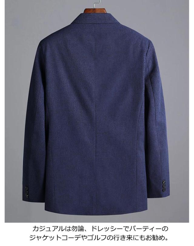 | M-4XL!麻のような爽やかな風合いのテーラードジャケットです。 吸汗性と速乾性に優れたポリエステル生地を使い、機能性にも優れたアウターとなっております。 大人かつ上品な雰囲気を演出。 カジュアルは勿論、ドレッシーでパーティーのジャケットコーデやゴルフの行き来にもお勧め。 シンプルなデザインなので、合わせるアイテムを選ばず万能に活躍します。 | |