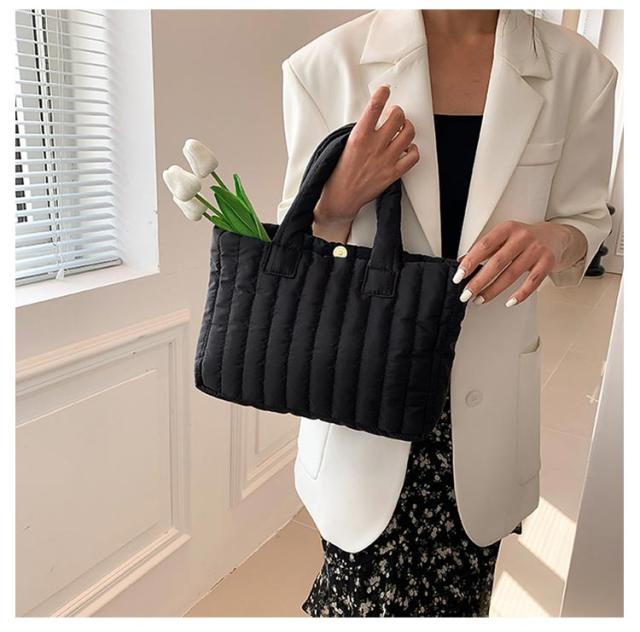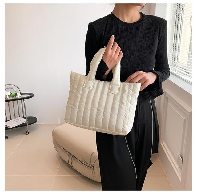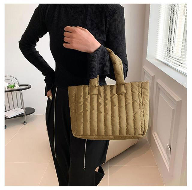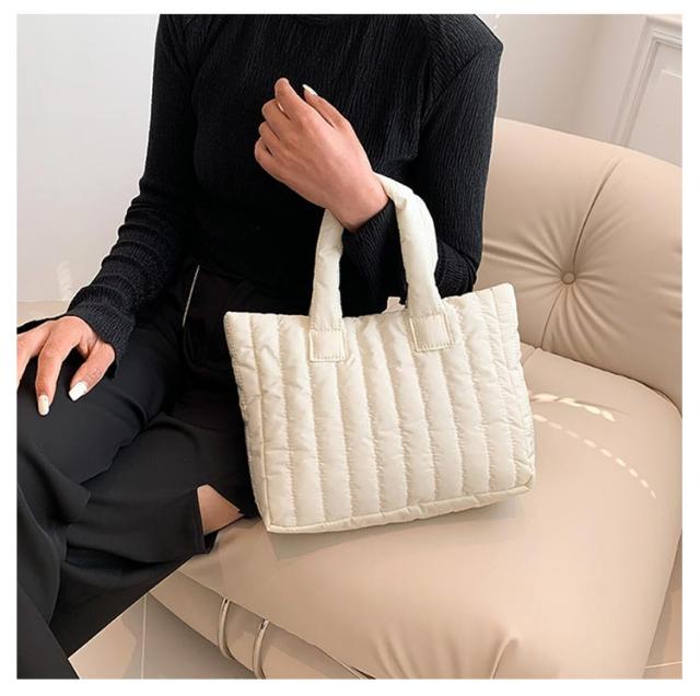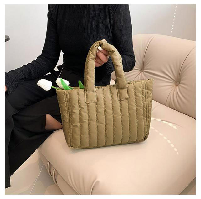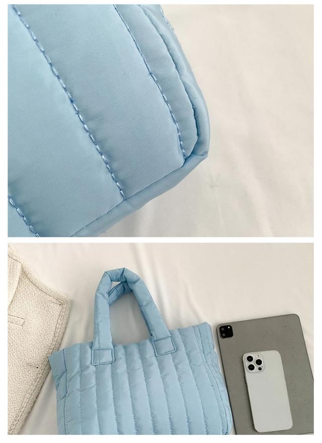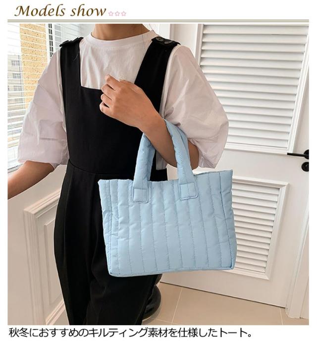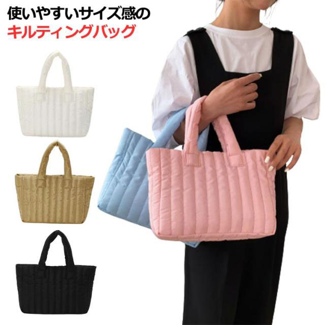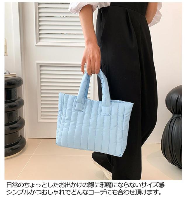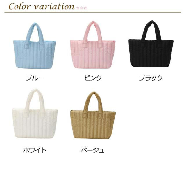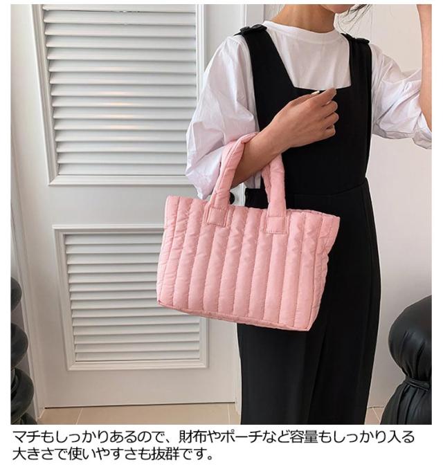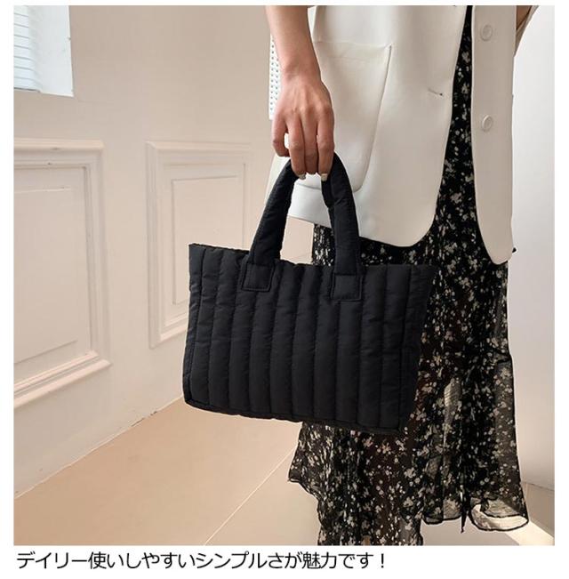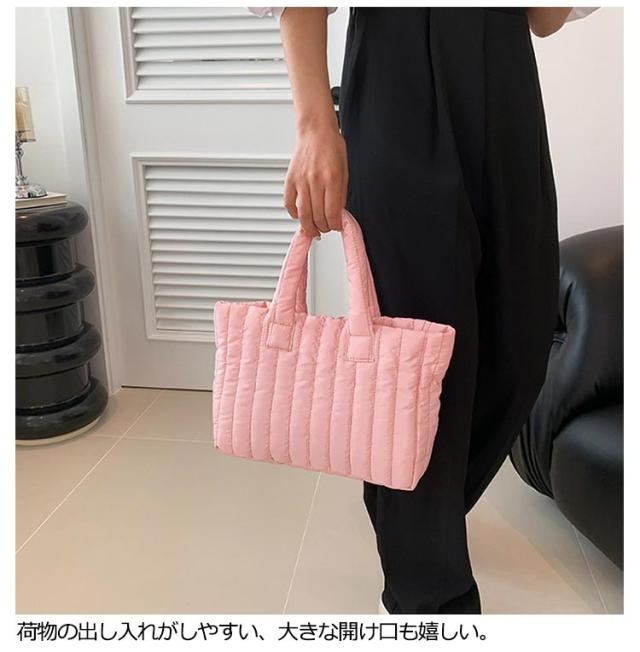 キルティング バッグ ミニ トートバッグ レディース ハンドバッグ マチあり ミニトート 秋 冬 キルト 中綿 バッグ かばん 鞄 ストライプ柄 コンパクト 軽量 韓国 大人 カジュアル 無地 シンプル かわいい ホワイト ブラック ピンク ベージュ 【送無】