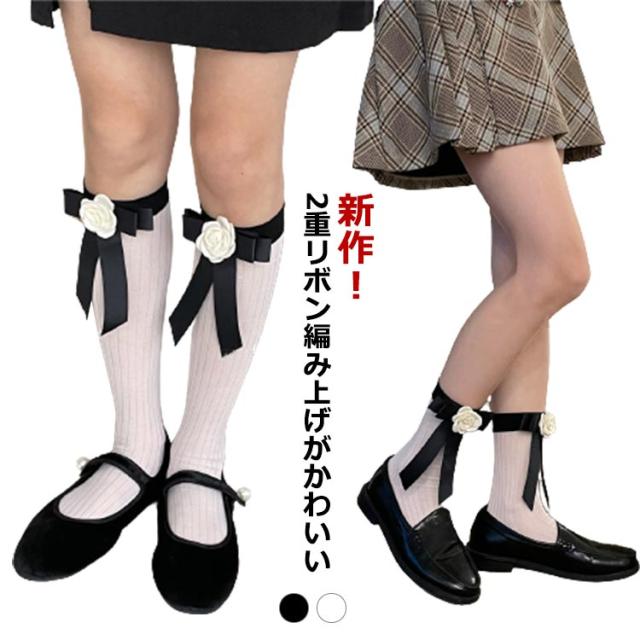 白 フリル ハイソックス 送料無料 2重リボン編み上げがかわいい 靴下 フォーマル 白 黒 無地 ハイソックス ショートソックス リボン フリル 卒園式 入園式 入学式 発表会 結婚式 新学期 編み上げ