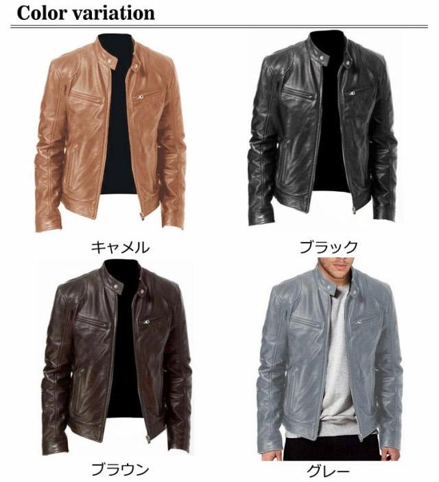 レザージャケット メンズ 白 黒 革ジャン スタンドカラー レザー ジャケット メンズ ブラウン 革ジャン ブルゾン ライトアウター バイクジャケット ライダースジャケット フェイクレザー PUレザーコート 大きいサイズ 無地 彼氏 男性 春 秋 冬 アウター