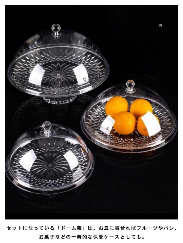 ケーキスタンド ケーキドーム ケーキプレート フルーツプレート デザートプレート 保存カバー 透明 果物収納 お菓子 結婚式 誕生日 パーティー お洒落 送料無料