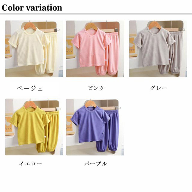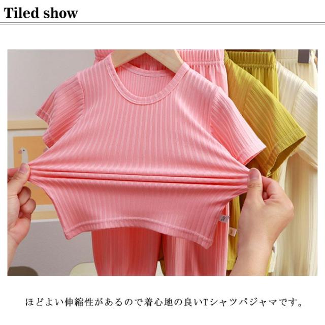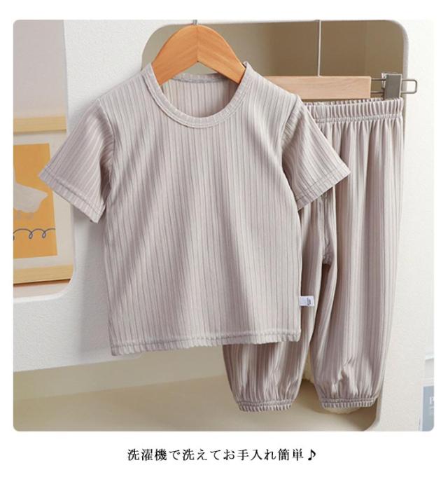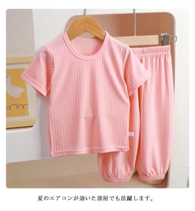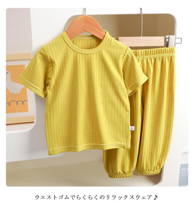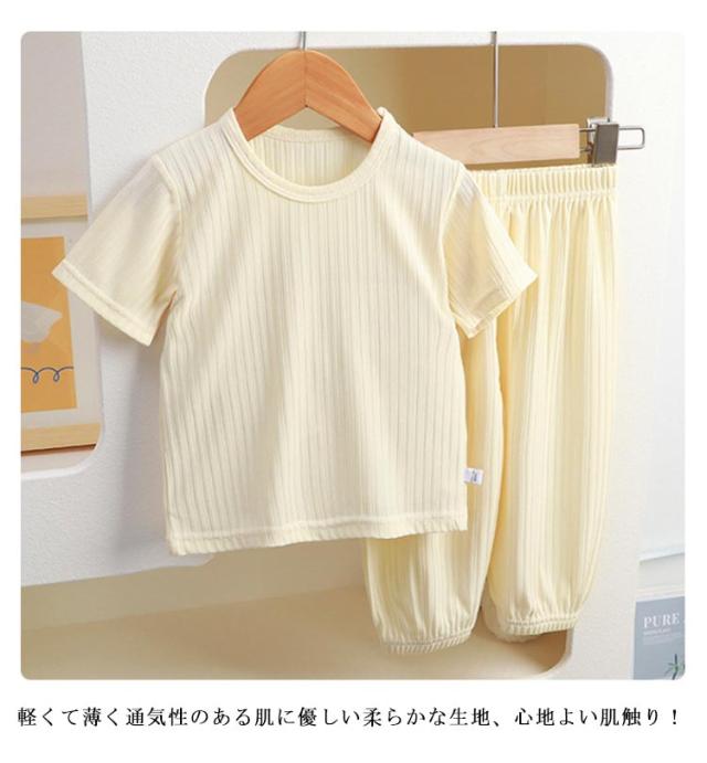 半袖 ルームウェア 子供 パジャマ 涼しい 男の子 女の子 キッズ 部屋着 ベビー服 夏 上下セット 子ども 80 90 100 110 120 130 140cm 薄手 Tシャツ 無地 軽い ロングパンツ 裾ゴム 赤ちゃん ウエストゴム 2点セット 女児 男児