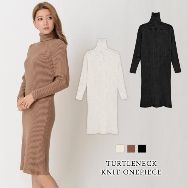 タートルネック ニットワンピース