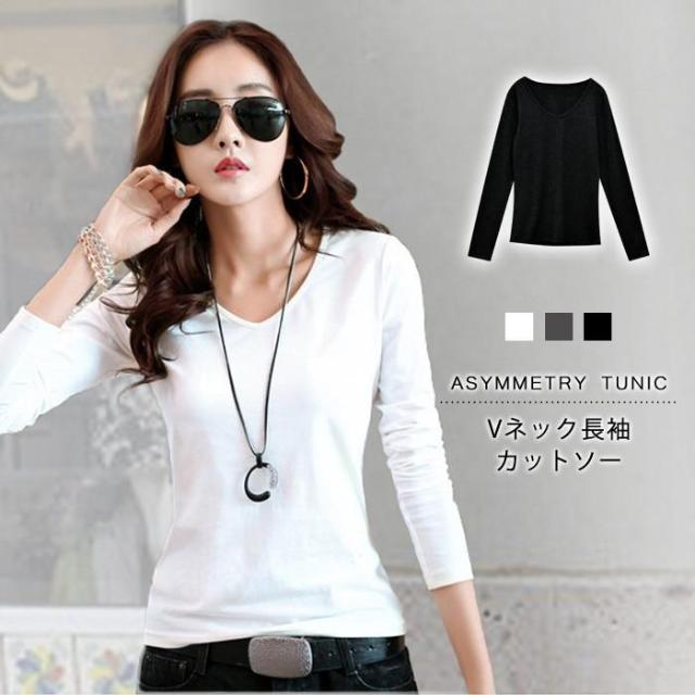 カットソー レディース トップス 長袖 Tシャツ 七分袖 Vネック ロンT 無地 ゆるカジ 新作トップス 黒 ホワイト 白 グレー ベーシック 春 夏 春夏 送料無料