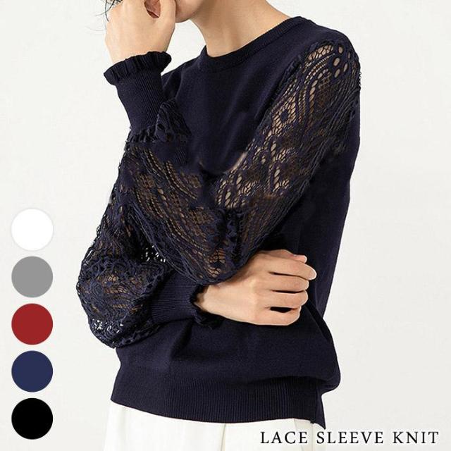 ニットトップス レディース 春 夏 春夏 白 黒 長袖 セーター トップス レーススリーブ ホワイト グレー ボルドー ネイビー ブラック 20代 30代 40代 送料無料