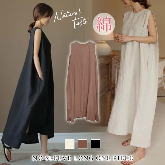 ノースリーブ ロング ワンピース