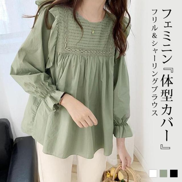フリル & シャーリング ブラウス